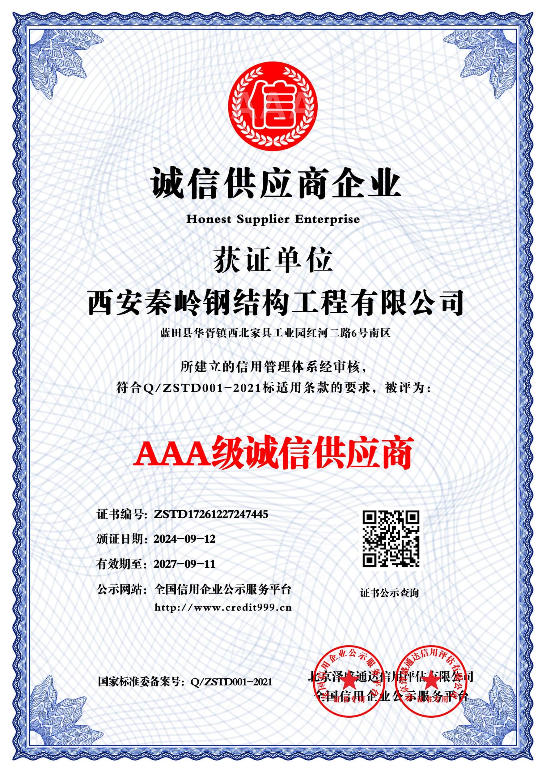 所属分类:企业资质 发布时间: 2024-09-13 作者:西安秦岭钢结构工程有限公司