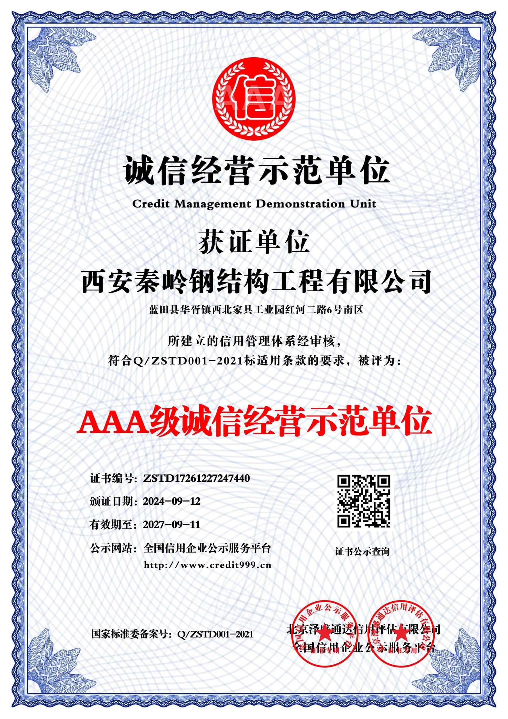 所属分类:企业资质 发布时间: 2024-09-13 作者:西安秦岭钢结构工程有限公司
